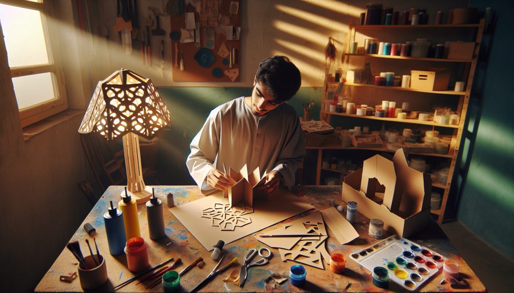 La decoración de la lámpara de cartón puede ser tan simple o elaborada como se desee. Puedes utilizar papel de seda para agregar color y textura, pinturas acrílicas para dibujar diseños, o incluso elementos naturales como hojas secas para una decoración más orgánica.